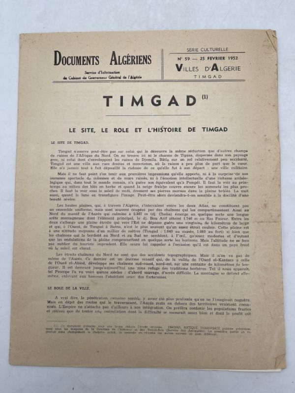 Edition : Service d'information du Cabinet du Gouverneur Général en Algérie Année : 1952 Livre d'occasion