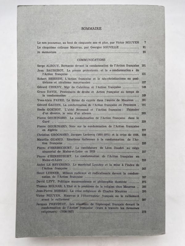 Centre Charles Maurras, 1986. Fort In-8 broché de 395 pages + table. Première partie des actes du cinquième colloque Maurras: Non possumus. La crise religieuse de l’Action française. Présente les contribution de Serge Albouy, Gérard Gaudin, André le Reverend ou encore Pierre d’Herbecourt. Bon état.