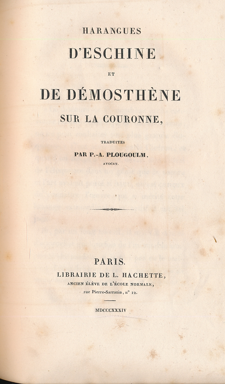 Auteur(s) du livre : ESCHINE - DEMOSTHENE