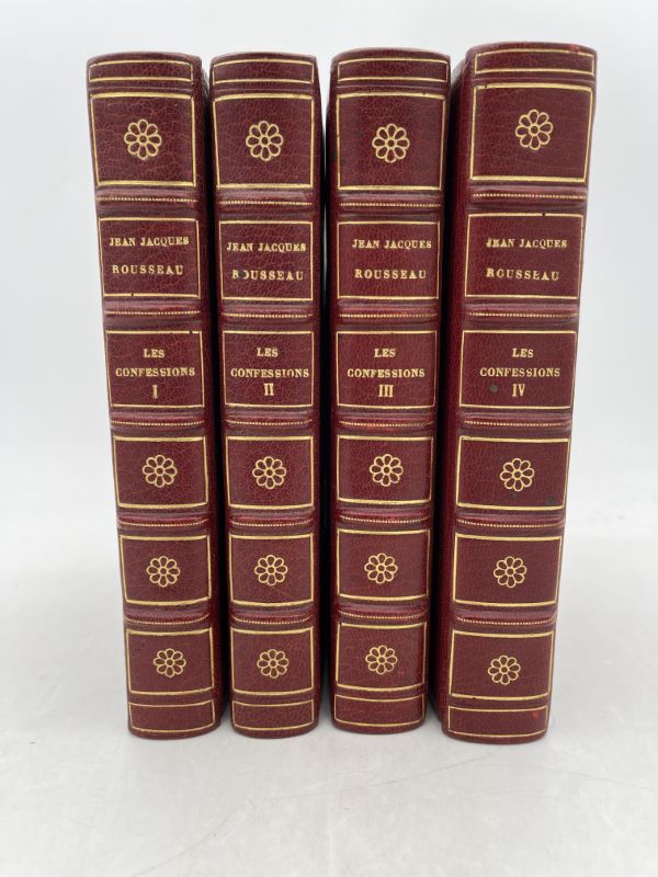 Paris, A la cité des livres, 1929. 4 volumes petits In-8 relié demi-basane rouge à coins, dos à nerfs ornés, titre doré, filets dorés sur les plats, têtes dorées. Les couvertures sont conservées. XX+ 270 + 270 + 305 + 358 pages. Publié avec des notices par François Mauriac. Tirage limité numéroté, celui-ci n° 849 sur vergé à la forme des papèteries d’arches. Reliure signée Kaufmann. Très bon état