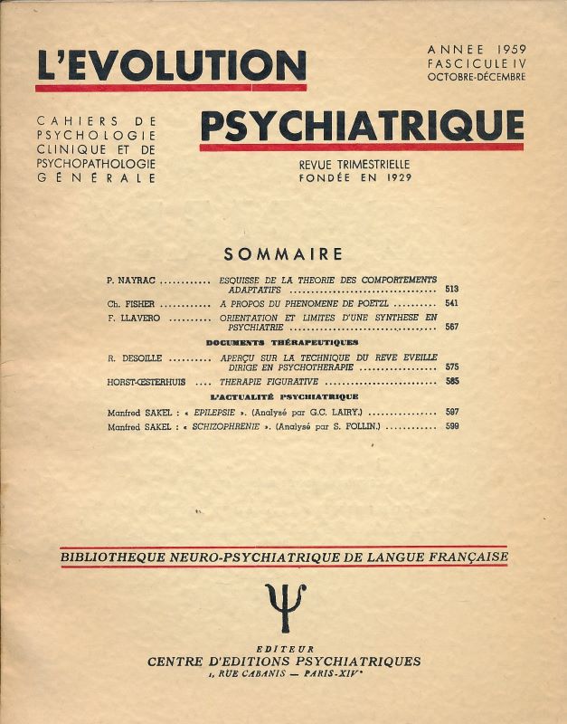 L’évolution psychiatrique. 1959. Fascicule IV. Octobre décembre